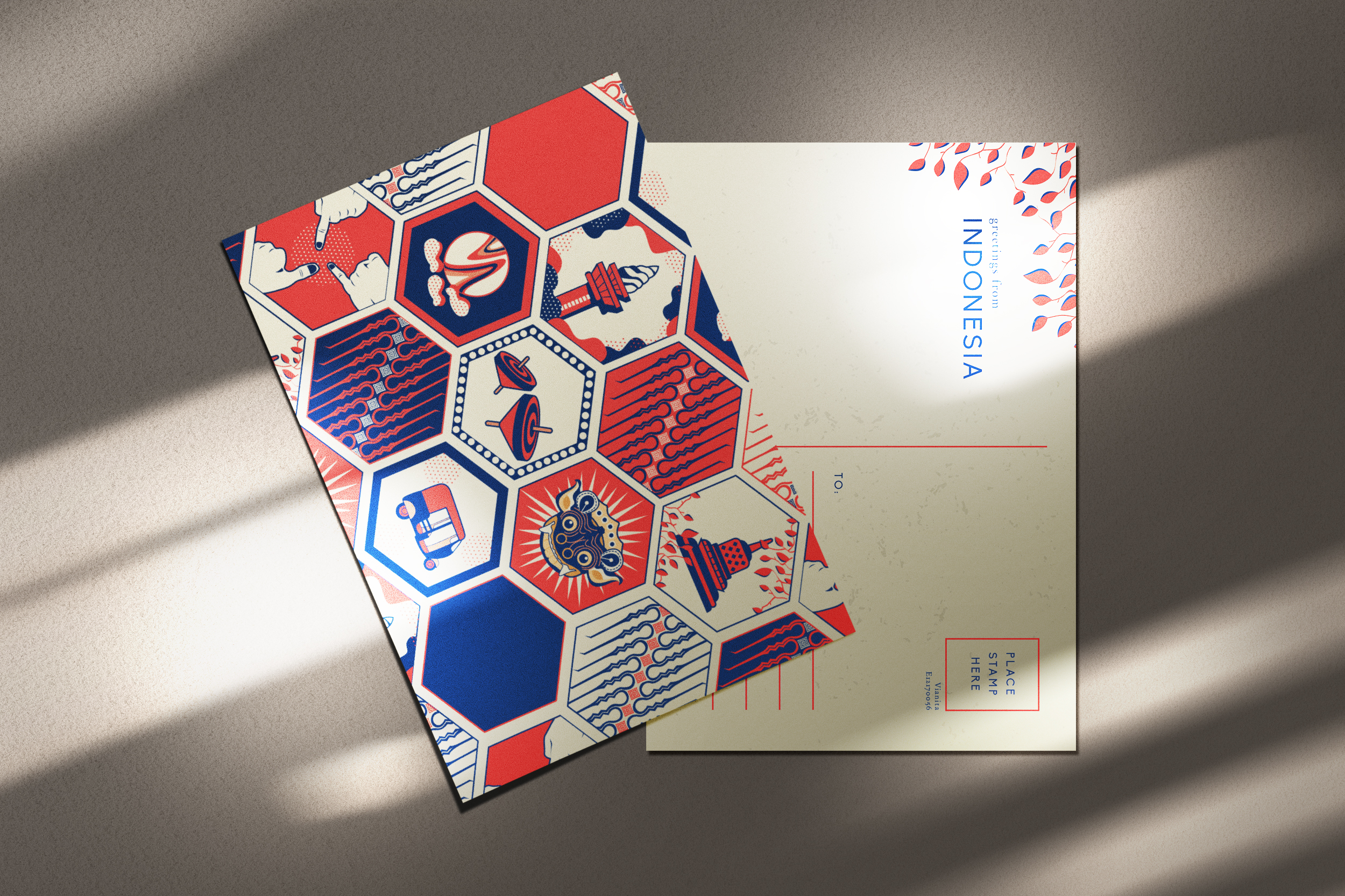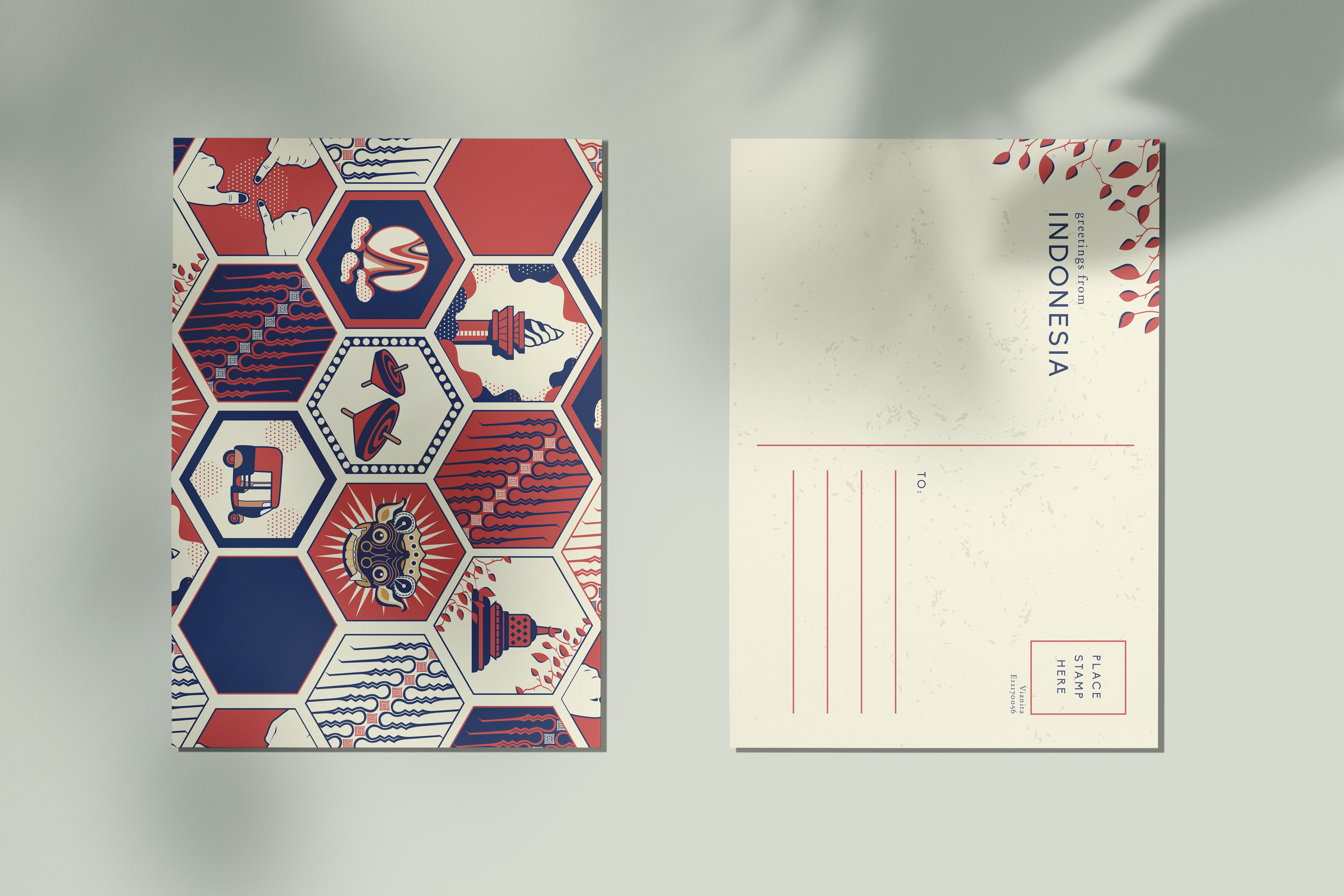 This Indonesian themed postcard is one of my favorite project. The design consists things that is identical to Indonesia. Indonesia's traditional vehicle, traditional building, traditional games, etc.